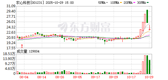 资金流向方面,今日该股主力资金净流出761.24万元,其中,特大单净流出127.49万元,大单资金净流 出633.75万元。近5日主力资金净流入4095.04万元。(数据宝) 农心科技10月29日交易公开信息 农心科技今日下跌7.95%,全天换手率25.85%,成交额3.10亿元,振幅7.00%。龙虎榜数据显示,营业部 席位合计净卖出1321.58万元。 深交所公开信息显示,当日该股因日跌幅偏离值达-9.28%上榜,营业部席位合计净卖出1321.58万元。 证券时报·数据宝统计显示,上榜的前五大买卖营业部合计成交7651.41万元,其中,买入成交额为 3164.92万元,卖出成交额为4486.49万元,合计净卖出1321.58万元。 具体来看,今日上榜营业部中,第一大买入营业部为财通证券股份有限公司东北分公司,买入金额为 754.00万元,第一大卖出营业部为华泰证券股份有限公司湖南分公司,卖出金额为1108.40万元。 | 买/ | 会员营业部名称 | 买入金额(万 | 卖出金额(万 | | --- | --- | --- | --- | | 卖 | | 元) | 元) | | 买一 | 财通证券股份有限公司 ...