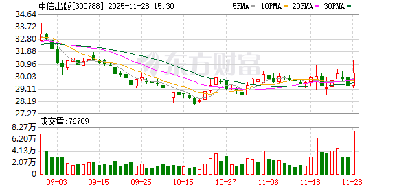 证券之星消息,11月28日出版板块较上一交易日上涨0.94%,读客文化领涨。当日上证指数报收于 3888.6,上涨0.34%。深证成指报收于12984.08,上涨0.85%。出版板块个股涨跌见下表: | 代码 | 名称 | 收盘价 | 涨跌幅 | 成交量(手) | 成交额(元) | | | --- | --- | --- | --- | --- | --- | --- | | 301025 | 读客文化 | 11.74 | 11.49% | 67.82万 | | 8.26亿 | | 6668209 | 读者传媒 | 7.95 | 9.96% | 27.50万 | | 2.14亿 | | 301231 | 荣信文化 | 35.27 | 4.19% | 11.94万 | | 4.20亿 | | 300788 | 中信出版 | 30.31 | 3.27% | 7.68万 | | 2.33亿 | | 666109 | 出版传媒 | 7.66 | 2.54% | 11.41万 | | 8723.26万 | | 002181 | 粤传媒 | 9.46 | 2.16% | 60.81万 | | 5.73亿 | | 3010 ...