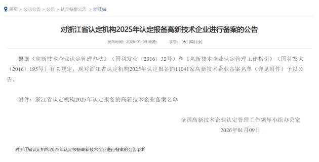 公司资质与认定 - 杭州投融界互联网科技有限公司于1月9日通过2025年报备的国家高新技术企业认定[1] - 公司是“浙江投融界科技有限公司”的全资子公司,此次为自2017年首次获评后连续第四次通过该国家级认定[1] - 国家高新技术企业认定由科技部、财政部、税务总局联合主导,旨在筛选和培育国家重点支持的高新技术领域内,持续进行研发与技术成果转化并形成核心自主知识产权的企业[3] - 该资质认证标准严格,涵盖核心自主知识产权、科技成果转化能力、研发组织管理水平及企业成长性等多个维度,认证有效期仅为三年,需定期复核[5] 公司业务与运营 - 公司是国内创立较早的一站式创业服务平台,自2010年成立以来始终专注于创业服务领域[6] - 公司以“科技+服务”为核心优势,致力于为创业者提供全链条、陪伴式的解决方案[6] - 公司服务足迹已遍布全国所有省级行政区,累计服务用户超过450万[6] - 公司服务深度覆盖互联网、智能制造、医疗健康、节能环保等85个细分行业[6] - 公司成功打造了超过10000份专业商业计划书,举办了逾1500场线下创投对接活动[6] 创新与未来展望 - 连续四次通过认定是对公司长期坚持技术创新与服务模式创新的有力背书,证明了其在创业服务领域领先的研发投入与体系化管理水平[8] - 该认定体现了公司将科技力量深度融入企业服务,推动行业升级的实践成果[8] - 公司未来将以此为契机,进一步强化自主创新能力,深化“科技+服务”的融合,提升服务创业者的广度、深度与效率[8]