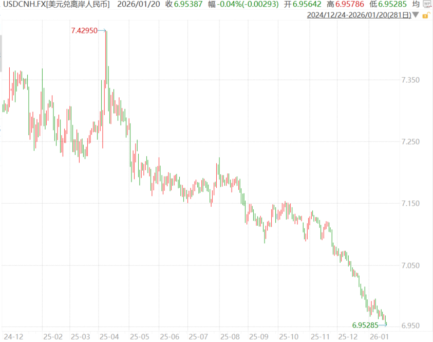 人民币汇率走强核心观点 - 进入2026年,离岸人民币对美元汇率一度升破6.96,创下近年来新高,此趋势由国内外多重因素共同驱动,并非短期波动 [1][9] - 人民币升值对不同行业和企业带来结构性变化,理解其背后的原因及影响是影响当前投资决策和资产配置策略的关键 [1][9] 人民币升值的驱动因素 - **内部因素**:中国经济在2025年展现出超预期韧性,制造业转型升级加速,新能源汽车、人工智能等战略性新兴产业蓬勃发展,增强了中国产品的全球竞争力 [3][11] - **内部因素**:2025年前11个月,中国货物贸易顺差首次突破1万亿美元大关,达到1.076万亿美元,同比增长21.7%,强劲的出口表现增强了市场信心,为人民币升值提供核心驱动力 [3][11] - **外部因素**:美联储开启降息周期,美元持续走弱,去年全年跌幅超9%,美元利差的相对优势大幅下降 [3][11] - **外部因素**:美国高企的债务水平、贸易保护主义政策及美元资产内部波动加剧,长期影响美元信用,在全球资本寻求多元化配置背景下,提升了人民币资产的吸引力 [3][11] 人民币升值对市场与资本流动的影响 - 人民币升值趋势有望吸引国际资本流入中国市场,寻求资产增值与汇兑收益的双重回报 [4][12] - 流入的外资通常偏好业绩确定性强、治理规范的蓝筹股与行业龙头,其持续流入有助于推高此类“核心资产”的估值 [4][12] - 市场风格可能重塑,资金可能从受升值压力的传统出口板块流出,转而流入更受益于人民币升值的进口板块 [4][12] - 人民币升值意味着居民境外购买力提升,购买进口商品、海外旅游及留学等需求或进一步激发,有望刺激消费升级 [4][12] 受益于人民币升值的投资方向 - **进口依赖行业**:人民币升值可降低原材料或核心设备的进口采购成本 [5][13] - **航空运输业**:有利于降低燃油采购与飞机租赁成本 [5][13] - **造纸行业**:有利于降低进口木浆成本 [5][13] - **石油化工业**:对原油进口依赖度较高的炼化企业,可显著降低原油采购成本 [5][13][14] - 这些行业规模效应显著,对成本变动敏感,受益更为充分 [5][14] - **成长板块**:紧跟产业升级步伐的前沿领域 [6][15] - 重点关注人工智能产业链(算力基础设施、算法开发及行业应用)、商业航天、半导体设备与材料、军工高端制造、新能源车以及固态电池等领域 [6][15] - 这些领域顺应全球技术趋势,受益于中国新经济成长和全球流动性改善,并能从进口设备成本下降中受益 [6][15] - **核心资产**:人民币升值提升人民币资产配置吸引力,北向资金青睐低估值、高股息的核心资产 [7][16] - **金融板块**是外资配置重点之一,银行板块股息率具备吸引力,券商、保险等金融机构业务量随市场活跃度提升而增加 [7][16] - **部分家电龙头**受益于内需复苏与进口零部件成本下降,业绩确定性较强,估值修复空间相对清晰 [7][16] - **周期与大宗商品**:人民币升值背后是国内经济基本面改善,周期板块有望受益于经济复苏带来的需求增长 [8][17] - 人民币升值降低了原材料进口成本,而行业本身的供给约束或产能利用率的提升为价格提供了支撑 [8][17] - 叠加全球流动性宽松,铜、铝等品种具备较强的价格支撑 [8][17]