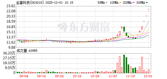 近日该股表现 | 日期 | 当日涨跌幅(%) | 换手率(%) | 主力资金净流入(万元) | | --- | --- | --- | --- | | 2025.11.28 | 10.03 | 2.80 | 3002.49 | | 2025.11.27 | 10.03 | 5.38 | 2084.70 | | 2025.11.26 | 9.99 | 29.64 | 113.05 | | 2025.11.25 | 9.99 | 11.81 | 4414.79 | | 2025.11.24 | 9.97 | 5.65 | 5541.18 | | 2025.11.21 | -1.39 | 10.41 | -721.60 | | 2025.11.20 | -3.00 | 9.50 | 260.33 | | 2025.11.19 | 1.29 | 11.92 | 421.85 | | 2025.11.18 | -3.87 | 16.31 | -255.72 | | 2025.11.17 | -10.00 | 29.04 | -5574.68 | (文章来源:证券时报网) 金富科技盘中涨停,已连收6个涨停板,截至9:31 ...