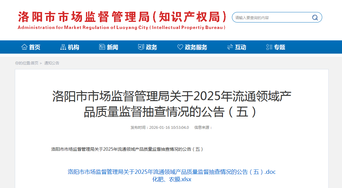 河南省洛阳市市场监督管理局发布关于2025年流通领域产品质量监督抽查情况的公告