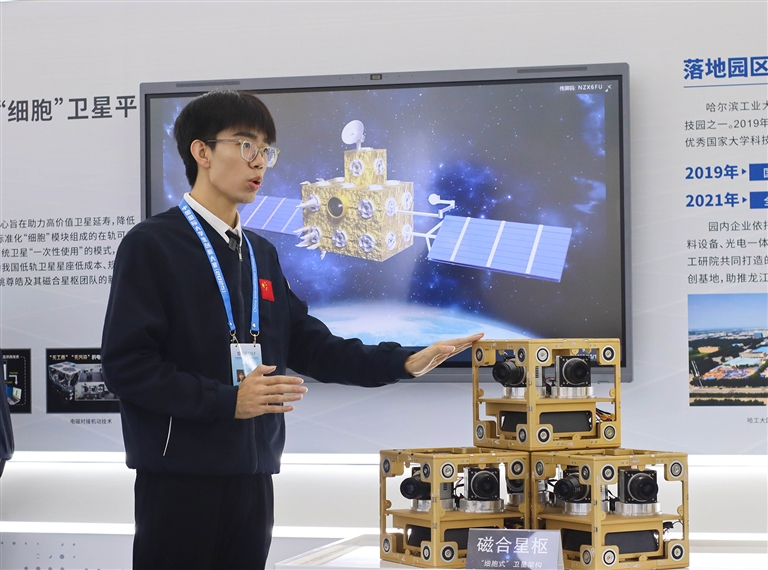 在中国国际大学生创新大赛优秀项目展上,哈尔滨工业大学代表在展示"磁合星枢——面向巨星座建设的新体 制'细胞'卫星平台"项目模型。 10月15日,中国国际大学生创新大赛(2025)资源对接会在郑州大学举行。投资机构、行业企业、参赛项目 代表等共聚一堂,推动优秀创新项目高效对接,实现创新成果转化落地。 来自南京航空航天大学参赛团队的"零翼起航——地球第三种交通生态引领者"项目,瞄准通用航空痛点,自 主研发的三余度飞控系统,攻克通用航空领域长期存在的飞行效率低、控制难、噪声大、适航取证复杂的难 题。 目前,该团队打造的产品矩阵,可应用于空中旅游、城市交通等多个低空飞行场景,未来有望撑起城市与城 际低空通勤的"第三种交通生态"。 "我们预研的一代机型是6人座飞机,一名驾驶员和5名乘客,相当于'空中商务车'。""零翼起航"项目成员代长 其介绍。 "微分智飞——下一代全自主AI+飞行器平台供应商"致力于打造全球领先的飞行具身大脑及通用群体智能系 统;"骨之锁",首创可注射、水下黏附且可降解的骨黏合剂,有望解决粉碎性骨折后小碎骨难固定这一临床 痛点;"虫语者——大学生追梦回乡村,小蚂蚱奏响共富曲"打造的飞蝗产业矩阵,实现了 ...