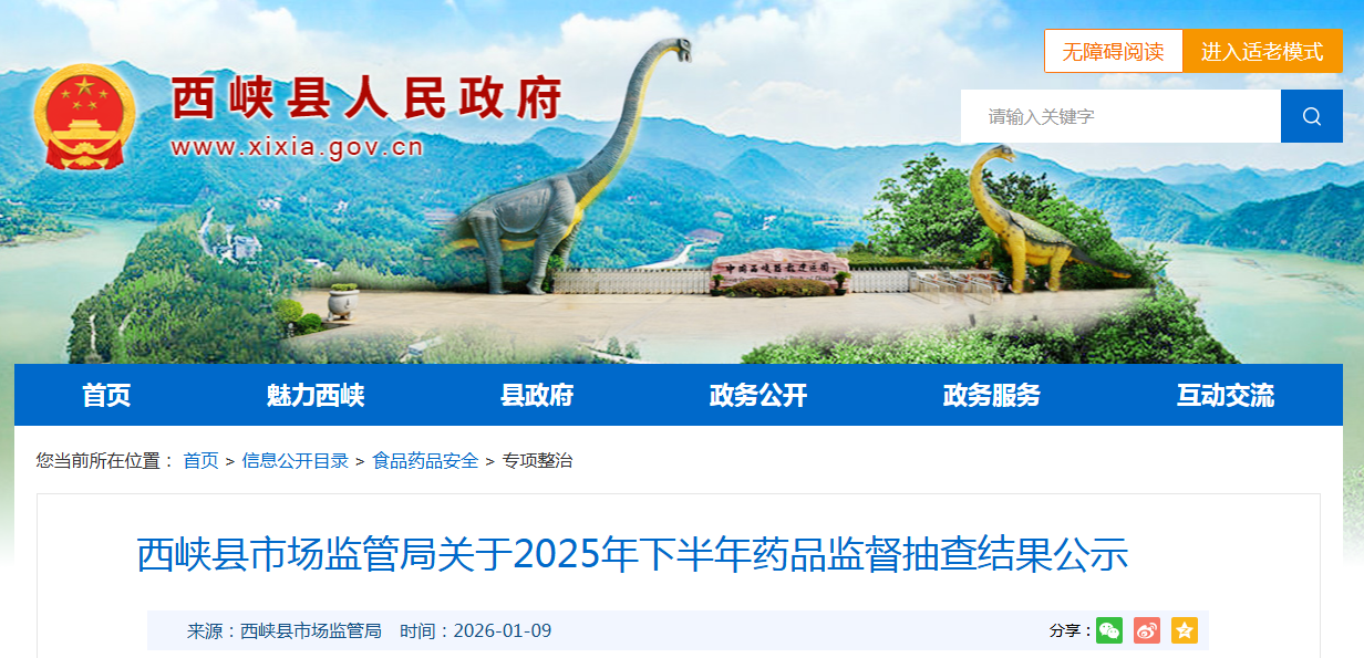 河南省西峡县市场监管局关于2025年下半年药品监督抽查结果公示