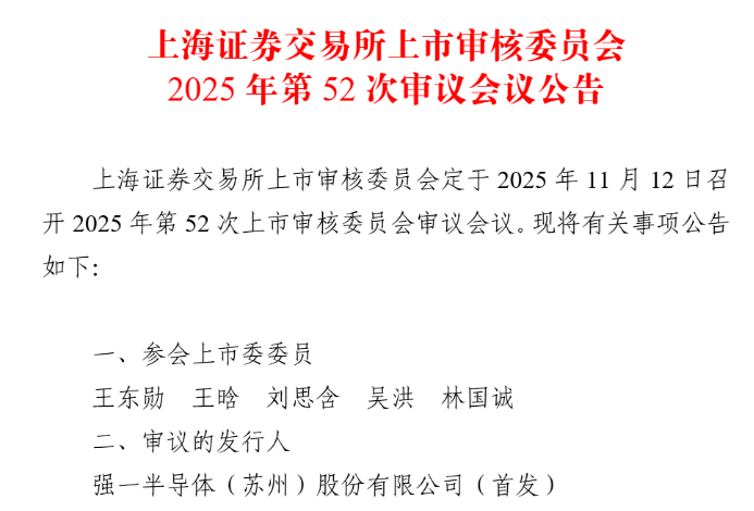 根据上交所的安排,强一半导体(苏州)股份有限公司(以下简称"强一股份")的首发事项将于11月12 日接受上交所上市审核委员会2025年第52次上市审核委员会审议会议的审核。这意味着强一股份的IPO 进程向前迈出了重要一步。 强一股份IPO显然是头顶光环走来。该公司是一家专注于服务半导体设计与制造的高新技术企业,公司 聚焦晶圆测试核心硬件探针卡的研发、设计、生产与销售。长期以来,探针卡行业被境外厂商主导,该 公司是市场地位领先的拥有自主 MEMS探针制造技术并能够批量生产 MEMS探针卡的厂商,打破了境 外厂商在MEMS探针卡领域的垄断,为我国半导体晶圆测试领域所需核心硬件探针卡的保障能力和自主 可控水平的提升做出了重要贡献。根据公开信息搜集并经整理以及 Yole 的数据,2023 年、2024 年公司 分别位居全球半导体探针卡行业第九位、第六位,是近年来唯一跻身全球半导体探针卡行业前十大厂商 的境内企业。 | 公司简称 | 毛利率 | | | | | --- | --- | --- | --- | --- | | | 2025年1-6月 | 2024 年度 | 2023年度 | 2022 年度 | | For ...