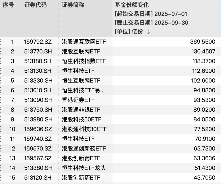 2025年三季度公募基金港股持仓达1.33万亿元,被动型基金持仓市值首超主动型。 21世纪经济报道记者易妍君 指数化投资浪潮下,被动型公募基金持有港股的市值开始超越主动型公募基金。 据兴业证券研究团队统计,截至2025年三季度末,公募基金的港股投资市值达13255亿元,继2025二季度之后再次创下新高。其 中,主动型公募基金、被动型公募基金的港股投资市值占比分别为47.2%、52.8%。这是自2017年以来,被动型基金的港股投资 市值首次超过主动型公募基金。 被动型基金的港股投资市值大幅提升,亦凸显出资金加速借道ETF产品布局港股市场的趋势。 21世纪经济报道记者注意到,今年三季度,基金份额增加较多的跨境ETF均为以港股主要指数为跟踪标的的产品。例如,富国 港股通互联网ETF、华宝港股互联网ETF、华夏恒生科技指数ETF的基金份额分别增加了369.55亿份、130.45亿份、118.37亿份。 与此同时,主动型公募基金对港股的个股偏好呈现一定变化。今年三季度,阿里巴巴、中芯国际被大幅增持;同时,华虹半导 体、紫金矿业(601899)、招金矿业、山东黄金(600547)、药明合联、药明生物新进(较二季度末)主动 ...