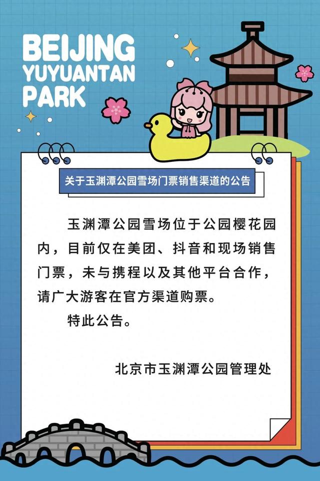 未与携程及其他平台合作,玉渊潭公园雪场澄清销售渠道