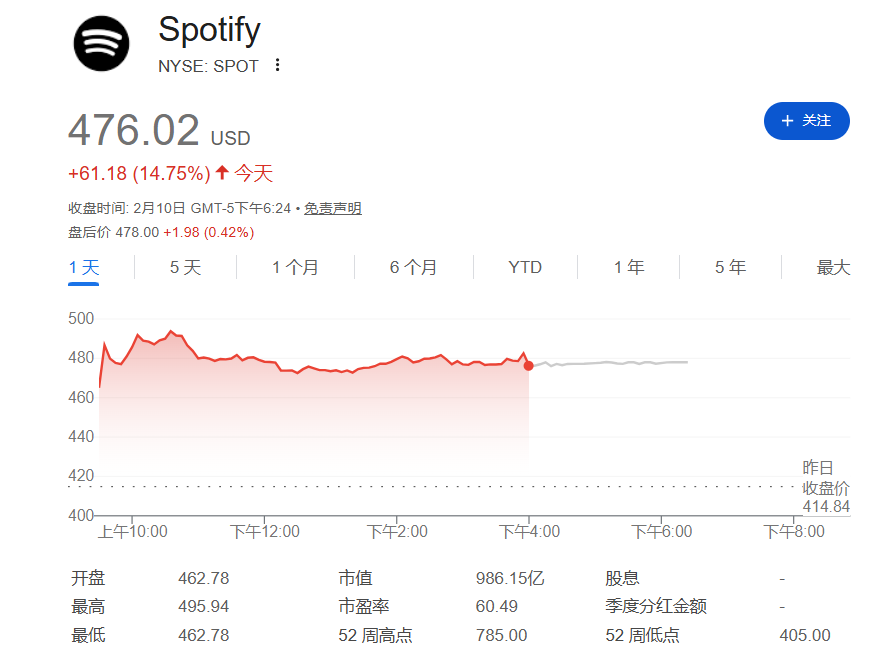 美股异动 | Spotify盘前大涨11%