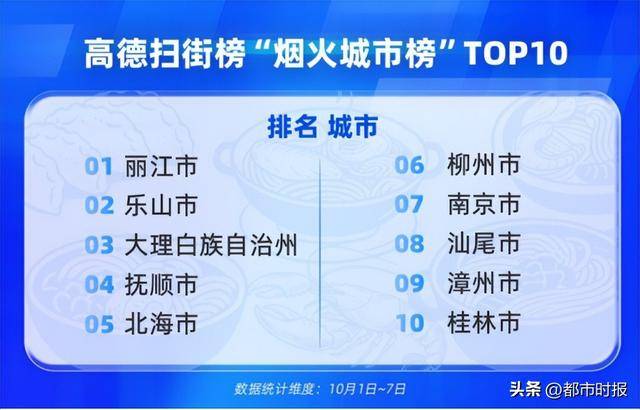 美食:"用脚投票"的榜单带动1亿线下餐饮客流 10月9日,高德扫街榜发布《2025国庆中秋长假出行消费报告》。报告显示,长假期间全国出行和消费 行为活跃,高德APP 10月1日活跃用户数突破3.6亿,创历史新高;截至10月3日,高德扫街榜累计用户 数突破4亿。8天假期,高德为线下餐饮店带去超1亿客流。用科技呵护人间烟火,正在激发我国出行和 消费市场的新活力。 9月10日,高德推出高德扫街榜,下设"烟火小店"、"本地人爱吃"、"多次前往(回头客)"、"轮胎磨损 (专程前往)"等子榜单,给各地消费者决策提供多角度参考。截至10月3日,上线23天的高德扫街榜累 计用户数超过4亿。 高德扫街榜"全国TOP100餐厅"的人均消费平均值是83元。今年国庆中秋长假,这张"用脚投票"的榜单 带火了"好吃不贵"的烟火好店。10月1日,高德烟火小店流量增长300%,高德本地生活餐饮行业订单量 同比增长150%。10月1日-8日,高德为线下餐饮店带去超1亿客流。 10月1日-7日,高德扫街榜"烟火城市榜"的前10名依次是:丽江、乐山、大理、抚顺、北海、柳州、南 京、汕尾、漳州和桂林。这些城市上榜烟火小店的流量占比最高,其中多数在长 ...