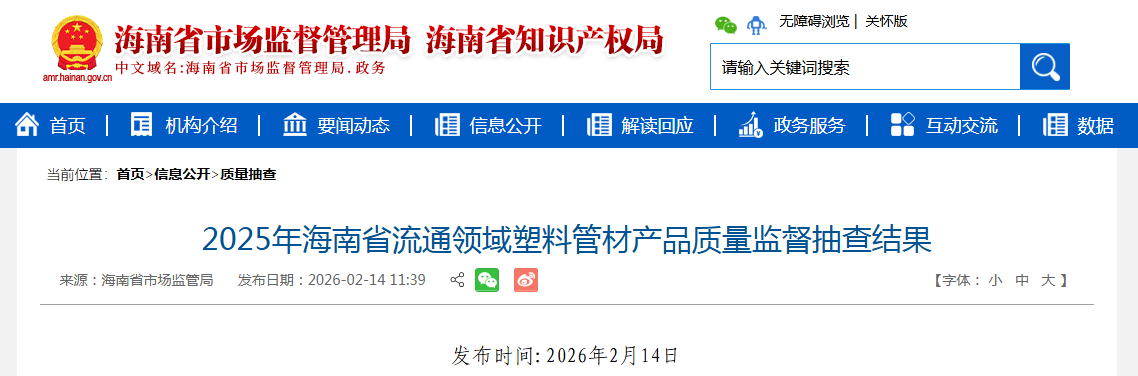 2025年海南省流通领域塑料管材产品质量监督抽查结果公布