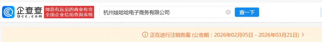 宗馥莉名下电商公司拟注销,注册资本2亿元