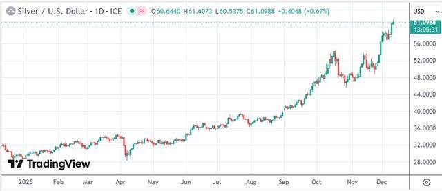 现货银价升破60美元后势头不减 ETF资金狂涌、投机客集结