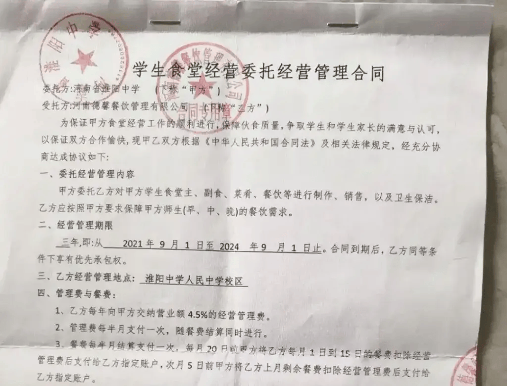 事件概述 - 河南周口市淮阳区联合调查组就媒体报道的“淮阳人民中学食堂承包方举报校领导”一事发布情况通报 已责成区纪委监委、区教体局等部门组成联合调查组 尽快查清事实并依规依纪依法处理 [1] - 河南德馨餐饮管理有限公司负责人实名举报 2022年9月至2024年7月期间 淮阳人民中学后勤负责人在校领导指示下 以“管理费”为由从学生缴纳的全部餐费中拿走15%的返点 共计330余万元 [1] - 淮阳中学负责人承认15%的餐费抽成系违规收取 钱款被用于给老师发津贴 [1] 合同与财务细节 - 德馨餐饮公司与淮阳中学签订的委托经营管理合同约定 校方收取营业额的4.5%作为管理费 [1] - 举报称校方实际抽成比例为学生全部餐费的15% 远超合同约定的4.5% [1] - 举报涉及的违规抽成总金额为330余万元 [1] 行业监管与政策背景 - 2022年财政部、教育部明确规定 中小学食堂须坚持公益性、非营利性原则 伙食费应全部用于供餐成本 [2] - 从中央到地方三令五申 中小学食堂必须坚持公益性、非营利性 [2] 潜在影响与行业规范 - 餐费被挪作他用可能导致学生餐食质量下降 甚至可能引发食品安全问题 侵害学生正当权益并影响家校关系 [2] - 事件暴露了学校利用食堂经营承包的“决定权”进行违规操作的利益驱动问题 [2] - 呼吁通过调查厘清“问题链”并对责任人严肃追责 同时以制度筑牢防线 实现学生餐费收支全程公开、全程可监 [2]