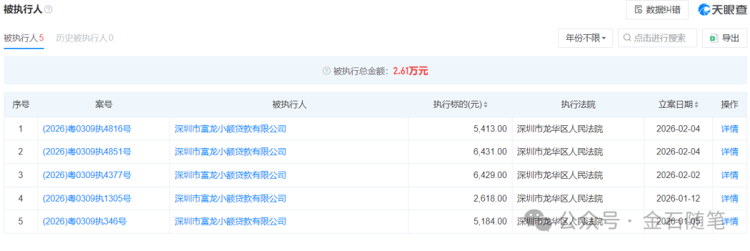 行业监管动态 - 2026年以来,监管针对小贷行业动作频频,多省市加大推进不合规机构清退整治工作 [1][14] - 行业中保留催收、高额利息、高额担保费、“炒壳”、“借壳”等违规行为不断,但仍有不少小贷公司在违规边缘运营 [1][14] 公司基本概况 - 深圳市富龙小额贷款有限公司成立于2017年,是富士康的100%持股子公司,总部位于深圳富士康 [1][14] - 公司运营多款借贷产品,包括员梦金、富宝袋、富元汇、富金富、小花平台等,主要面向蓝领人群 [1][14] - 其中,员梦金主要面向富士康内部员工,年利率为12%,低于信用卡12期费率18% [2] 公司法律诉讼与执行情况 - 根据天眼查信息,富龙小贷在2026年新增5笔被执行人信息,仅2月就有3笔,被执行总金额为2.61万元 [1][14] - 具体被执行案件包括:2026年2月4日立案两笔,执行标的分别为5,413.00元和6,431.00元;2026年2月2日立案一笔,执行标的为6,429.00元;2026年1月12日立案一笔,执行标的为2,618.00元;2026年1月5日立案一笔,执行标的为5,184.00元 [1][14] - 公司在网络平台有近500家法律诉讼,基本都是原告身份,且很多案件显示为终结执行 [4][16] - 案件终结执行的原因多为借款人无财产可还,导致公司产生大量烂账 [4][16] - 公司还存在因违规收集用户个人信息而被自然人起诉的案件,涉及网络侵权责任纠纷(个人信息保护纠纷) [6][18] 公司产品利率与合规问题 - 根据裁判文书,公司在某诉讼中贷款利息年利率为16.4%,但罚息日利率高达0.0986%,年化利率为35.989% [8][20] - 根据《民法典》最新司法解释,各类贷款的利息、罚息、违约金等总和不得超过合同成立时一年期LPR的4倍,近两年1年期LPR在4%以内,合法利率上限约为16%,司法保护上限为24%,公司罚息利率36%明显超出规定 [8][20] - 在相关案例中,法院最终判定透支利息、罚息不得超过24%的标准,并未支持公司主张的按年利率13.8%计算利息加上按4倍LPR计算违约金的请求,最终利息按13.8%计算,违约金按LPR利率计算(约17%) [8][20] 客户投诉情况 - 在投诉平台,不少借款人投诉富龙小贷利息高达36%,严重超出国家规定,并且收取会员费,要求退还超出利息 [9][21] - 具体投诉案例显示,有借款人借款27,000元,利率高达36%,超过国家规定的24%,要求退还超出利息 [10][22] - 借款人投诉公司存在暴力催收行为,包括未到还款日就开始催收、逾期第一天就进行短信轰炸和恐吓 [10][11][12][22][23][24] - 有投诉指出,公司泄露借款人信息给第三方委托方(暴力催收团伙),对借款人及其家人朋友进行电话和短信骚扰、威胁恐吓 [25]