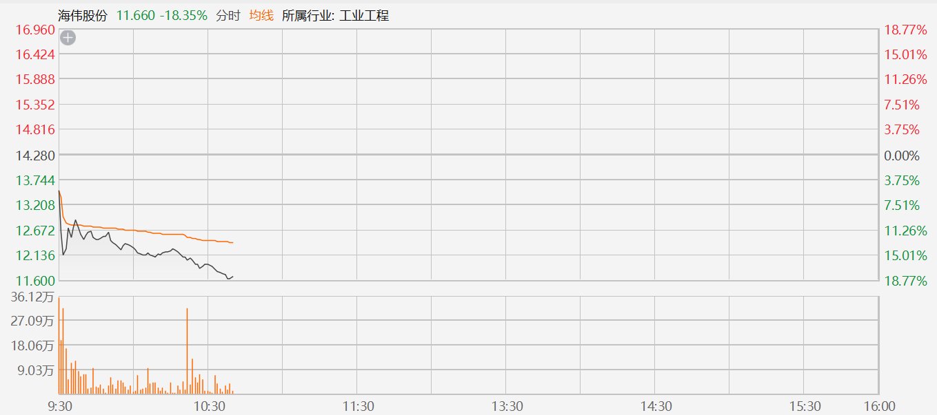 港股异动丨上市即破发!海伟股份首日挂牌大跌近19%