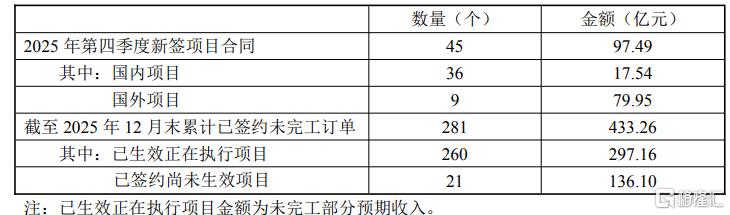 公司股价与交易表现 - 截至2026年1月26日收盘,公司股价报收于6.19元,较前一交易日上涨1.31% [1] - 公司当日开盘价为6.12元,最高价为6.3元,最低价为6.1元,成交额达2.48亿元,换手率为1.56% [1] - 公司最新总市值为184.95亿元 [1] 2025年新签合同情况 - 2025年,公司新签合同总额为468.36亿元,同比增长51.94% [1] - 新签合同中,工业类合同金额为457.71亿元,占总新签合同额的97.73% [1] - EPC工程总承包及施工类新签合同额为429.75亿元,同比增长66.61% [1] - 海外新签合同额为221.48亿元,同比增长263.38% [1] 公司存量合同情况 - 截至2025年12月31日,公司存量合同总额为541.20亿元,同比增长10.40% [1] - 其中,境外存量合同额为224.54亿元,同比增长162.68% [1] - 公告指出,上述经营数据为初步统计,可能存在差异 [1]