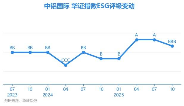 ESG评级结果概览 - 中铝国际在2025年10月31日获得华证指数ESG评级BBB [1] - 公司上一期(2025年7月31日)ESG评级为A,本次评级有所下调 [1] - 在建筑与工程行业118家A股上市公司中,公司本期ESG排名第15,上一期排名第14 [1] 各维度评分与排名 - 环境(E)维度得分为79.46,评级为BB,在行业内排名第7/118 [3] - 社会(S)维度得分为92.42,评级为AA,在行业内排名第7/118 [3] - 治理(G)维度得分为76.91,评级为BB,在行业内排名第63/118 [3] 评级机构与背景 - 评级机构为上海华证指数信息服务有限公司,拥有上海、深圳和香港交易所的指数编制行情授权 [3] - 证券之星成立ESG生态联盟,旨在推动形成具有中国特色的ESG管理体系 [3]