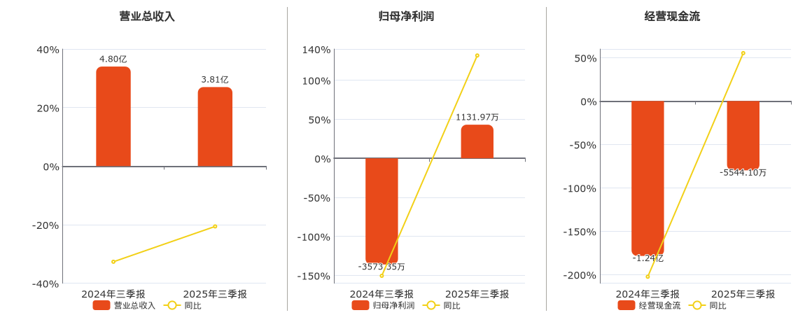公司财务表现 - 公司前三季度实现营收3.75亿元,同比下降7.28% [1] - 公司前三季度归母净利润亏损144万元 [1] - 公司前三季度扣非净利润亏损464万元 [1] - 公司前三季度基本每股收益为-0.0115元 [1]