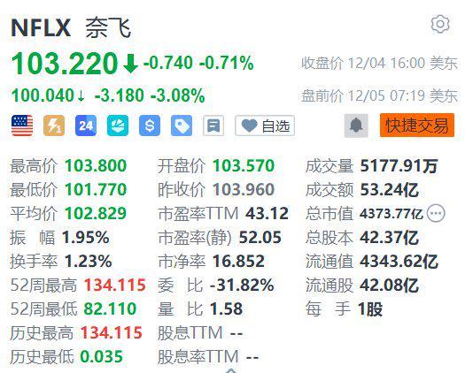 美股异动|奈飞盘前跌幅扩大至3%,宣布将收购华纳兄弟探索旗下的电视与电影制作公司及流媒体部门