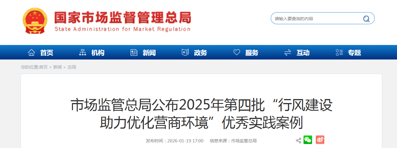 市场监管总局公布2025年第四批“行风建设助力优化营商环境”优秀实践案例