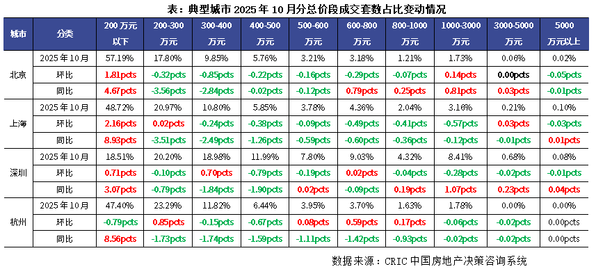 二手结构|10月京沪深200万元以下房源成交占比持增