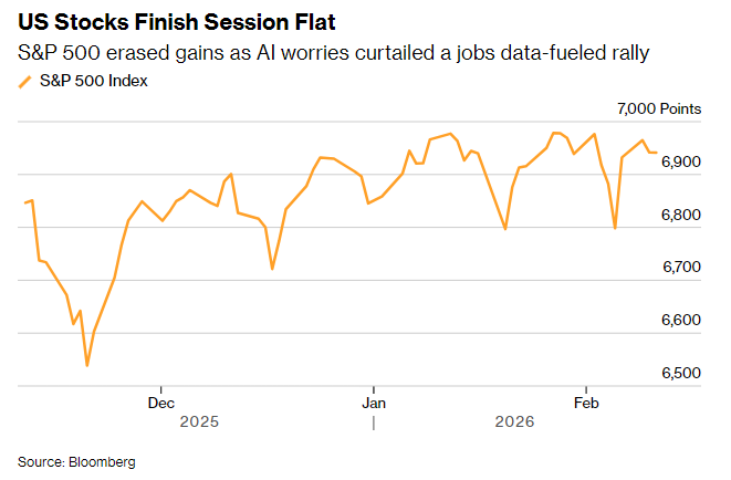 非农新增创逾一年新高难救市!AI恐慌交易主导美股 标普500错失历史新高