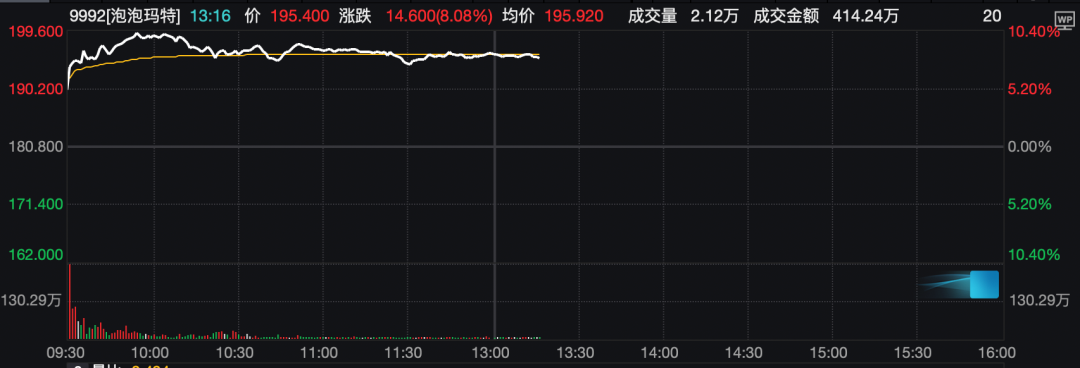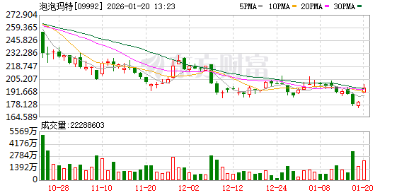 泡泡玛特1月19日发布公告称,斥资2.51亿港元回购140万股股份,每股回购价177.7港元至181.2港元。这是2024年初以来公司的首次回购。 同一天,荣耀宣布与泡泡玛特合作推出的"荣耀500 Pro MOLLY 20周年限定版"手机正式发布,售价4499元,国补后到手价3999元,将于1月25日上午10时 08分正式开售。 华泰证券认为,泡泡玛特在全球化与IP集团化战略下,充分发挥其商业模式的独占性优势,驱动业绩保持较快增长,迈向世界级潮玩IP龙头平台。 (文章来源:证券时报) 泡泡玛特大动作! 1月20日上午,泡泡玛特(09992.HK)大涨,盘中一度涨超10%。截至记者发稿,泡泡玛特涨逾8%。港股新消费概念集体走强,布鲁可盘中一度涨超 7%。 | 199.600 | | | | 9992[泡泡玛特] 13:16 价 195.400 涨跌 14.600(8.08%) 均价 195.920 | | | | 成交量 2.12万 成交金额 414.24万 | | | 20 | 10.40% | | --- | --- | --- | --- | --- | --- | --- | --- | --- | - ...