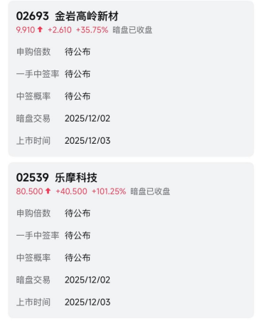 港股新股上市动态 - 2024年12月3日,港股市场将迎来乐摩科技与金岩高岭新材两只新股上市 [1] - 上市前暗盘交易表现亮眼,金岩高岭新材暗盘涨幅超过35%,乐摩科技暗盘涨幅超过100% [1] 金岩高岭新材公司概况 - 公司是中国专营煤系高岭土的企业,业务覆盖从采矿到销售的全价值链 [3] - 按2024年中国煤系煅烧高岭土公司收入计算,公司以5.4%的市场份额排名第五 [3] - 主要产品为精铸用莫来石材料和耐火用莫来石材料,是精铸型壳和耐火材料的重要材料 [3] - 公司控股股东背景雄厚,淮北矿业集团通过其全资子公司间接控制公司60.13%的投票权,淮北矿业集团由安徽省国资委及安徽能源集团分别持有62.96%及37.04% [3] 金岩高岭新材财务表现 - 2022年、2023年、2024年及2025年前5个月,公司收入分别约为人民币1.90亿元、2.05亿元、2.67亿元、1.05亿元 [3] - 同期净利润分别约为人民币0.24亿元、0.44亿元、0.53亿元、0.18亿元 [3] 乐摩科技公司概况与市场地位 - 公司成立于2014年,是一家机器按摩服务供应商,于2016年推出“乐摩吧”品牌 [5] - 通过商业综合体、影院、交通枢纽等消费场景为消费者提供机器按摩服务 [5] - 按交易额计,2022年至2024年,公司在中国所有机器按摩服务提供商中排名第一,市场份额分别为33.9%、37.3%及42.9% [5] - 按收入计,2024年公司在中国机器按摩市场排名第一,市场份额超过50% [5] 乐摩科技运营规模与覆盖 - 公司已设立超过4.8万个服务网点,投放超过53.3万张机器按摩设备,覆盖中国31个省级行政区及337个城市 [5] - 服务网点由2022年底的2.17万个扩展至2024年底的4.6万个,年复合增长率约为45.49% [5] - 累计可识别服务消费者总数超过1.74亿,注册会员人数超过4000万名 [5] - 服务网点覆盖里程碑:覆盖5318个总楼面面积超过3万平方米的商业综合体(约占中国同类商业综合体的70.4%),904个年票房超过人民币500万元的影院(约占中国同类影院的35.0%),24个年人流量超过1000万的机场(约占中国同类机场的60.0%) [6] 乐摩科技经营模式与财务表现 - 经营模式主要分为直营模式与合伙人模式,约70.4%的服务网点以直营模式运营 [6] - 2022年、2023年、2024年及2025年前8个月的总收入分别达到3.30亿元、5.87亿元、7.98亿元、6.31亿元 [6] - 净利润从2022年的648.1万元大幅增长至2023年的8734万元,2024年小幅回落至8580.7万元,2025年前8个月净利润达8855万元,已超2024年全年水平 [6] 乐摩科技运营挑战与股东结构 - 每台按摩设备的日均交易量由2023年的2.95笔减少至2024年的2.04笔,公司解释原因为2024年按摩设备数量较2023年大幅增加约90%,导致交易笔数被摊薄,且新设备需要爬坡期 [7] - 上市前股东主要以个人投资者为主,知名投资机构基石资本在上市前持股占比约2.6% [7]