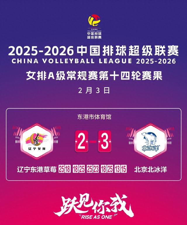 中国排球超级联赛女子A级常规赛收官战赛况 - 北京北冰洋女排在常规赛最后一轮客场以五局逆转战胜辽宁女排 比分为18比25 25比18 23比25 25比18 15比13 [1][3] - 北京女排在先失一局后 于第二局通过稳定一传和流畅进攻组织以及发球战术连得5分扳回一局 [3] - 比赛进入决胜局后 北京女排在比分落后情况下抓住防守反击机会打出小高潮 最终以两分优势获胜 [3] 常规赛最终排名情况 - 北京女排以8胜6负的战绩排名常规赛第五位 [4] - 上海女排以13胜1负的成绩排名常规赛榜首 江苏女排位居第二 [4] - 辽宁女排与河南女排将参加升降赛 [4] 比赛背景与球队状态 - 北京女排在此战前已提前锁定季后赛资格 球队自身压力较小 [3] - 辽宁女排在此战前需要拼下胜利以避免参加升降赛 [3]
