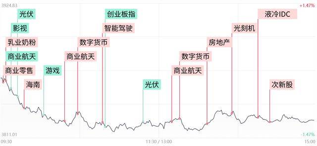 每日收评三大指数均跌超1%,全市场超4300股飘绿,商业航天午后探底回升