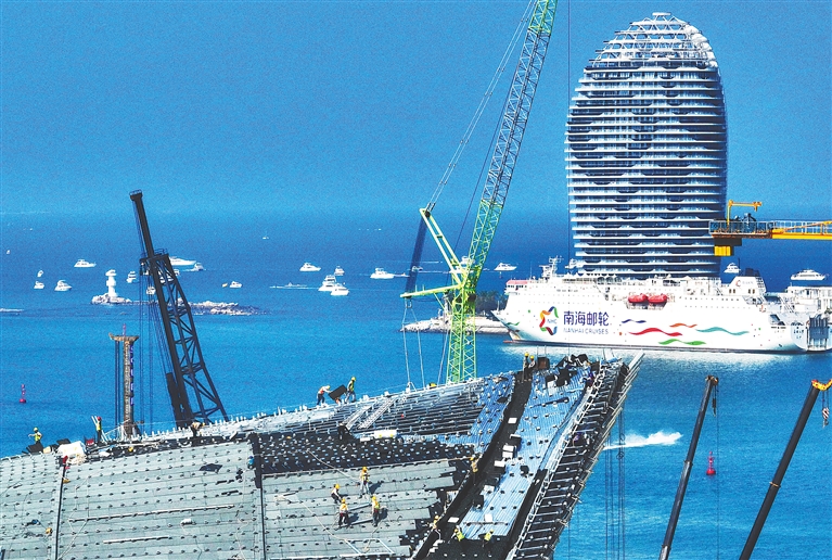 近日,位于三亚的中国海南国际文物艺术品交易中心项目施工现场,工人们干劲十足,正抢抓工期进行 屋面隔热层、防水层安装等工作。据介绍,该项目总建筑面积7.4万平方米,目前整体建设完成62%,建成后 将集综合办公、展示、会议、接待等功能于一体,成为三亚构建文化艺术全产业链的核心平台。海南日报全 媒体记者 王程龙 摄 ...