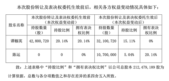 控制权变更交易核心条款 - 公司控股股东谭帼英拟分两期向陈运转让总计3400万股股份,占公司总股本16.00% [1] - 第一期转让1070万股,占总股本5.04%,转让价格为每股15元,较停牌前收盘价13.22元溢价13.5%,股份转让价款合计1.61亿元 [1] - 谭帼英同时将其持有的剩余3210.07万股股份的表决权委托给陈运行使,使陈运在本次权益变动后拥有表决权比例达到20.14% [1][2] - 交易完成后,公司控股股东及实际控制人将由谭帼英变更为陈运,公司股票将于2025年12月1日复牌 [1] 交易前后股权结构变化 - 交易生效前,谭帼英持股4280.072万股,持股比例20.14%,拥有表决权比例20.14% [2] - 交易生效后,谭帼英持股降至3210.072万股,持股比例15.11%,拥有表决权比例降至0% [2] - 交易生效后,陈运持股1070万股,持股比例5.04%,通过表决权委托拥有表决权比例20.14% [2] - 若全部股份转让完成,谭帼英持股比例将降至4.14%,陈运将持有16%股份 [5] 新任控制人背景与行业经验 - 陈运为资本市场与实业领域资深人士,曾是合力泰联合创始人并任董事、副总经理,也是三利谱联合创始人并任董事、副总经理 [2] - 陈运长期深耕显示模组等相关产业,合力泰以显示模组技术为核心,三利谱主营偏光片产品 [3] - 陈运现任胜宝莱光电科技有限公司董事长、总经理,胜宝莱专注于偏光片研发、生产及技术服务,陈运直接持有胜宝莱60%股份 [2][3] 交易动机与未来展望 - 谭帼英拟通过本次股份转让引入认可公司价值及未来发展前景的专业投资者,助力公司实现高质量发展 [5] - 陈运认同公司的投资价值,计划未来依托上市公司平台整合资源,提升公司盈利水平及持续经营能力 [3] - 公司现阶段主要业务为新能源汽车电控及驱动系统的研发、生产、销售以及技术服务,同时保持电极箔的研发、生产、销售业务 [5] 交易安排与历史参考 - 股份转让分两步进行,后续股份转让以第一期完成为前提,需在2026年11月23日至2027年1月31日期间另行签订协议 [5] - 双方已于2025年11月22日签署《股权转让意向协议》,陈运已支付1000万元诚意金至监管账户 [5] - 回顾陈运过往资本运作,在合力泰和三利谱的经历均以所持股份证券化并逐步减持退出为结果 [3][4]