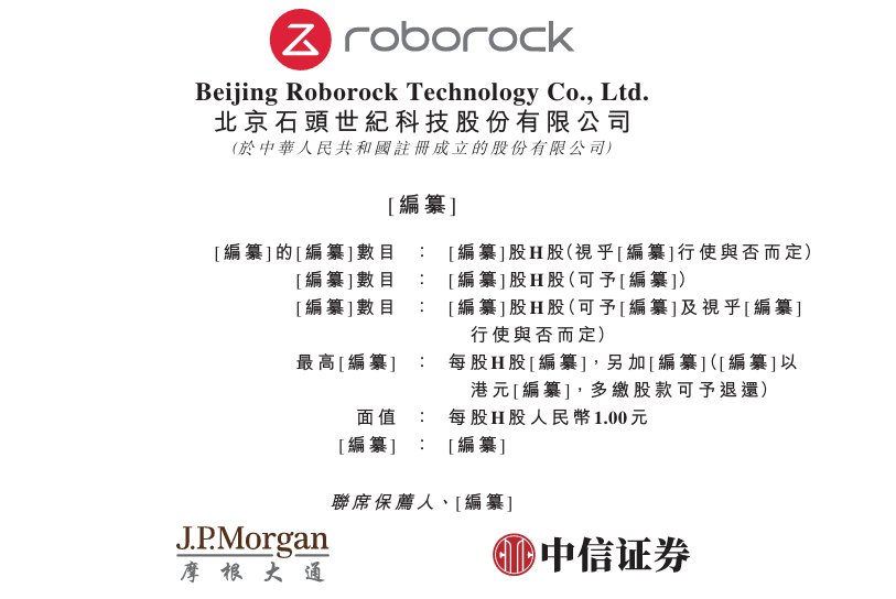 智通财经APP获悉,据港交所12月31日披露,北京石头世纪科技股份有限公司(简称:石头科技)向港交所主板递交上市申请,中信证券、摩根大通为其联席 保荐人。 | 「編纂]的[編纂]數目 : [編纂]股H股(視乎[編纂]行使與否而定) | [編纂]股H股(可予[編纂]) | [編纂]數目 | | | --- | --- | --- | --- | | [編纂]數目 | :「編纂】股H股(可予[編纂]及視乎[編纂] | 行使與否而定) | | | 最高[編纂] : 每股H股[編纂],另加[編纂](編纂]以 | 港元 [ 編 纂];多 繳 股 款 可 予 退 還) | | | | 面值 : 每股H股人民幣1.00元 | [編纂] : [編纂] | | | 公司简介 招股书显示,石头科技(688169.SH)是智能扫地机器人领域的全球领导者。于往绩记录期间,公司90%左右的收入来自销售智能扫地机器人,公司正不断扩 展新的产品类别,于市场上推出其他智能家居清洁产品,如洗地机及洗烘一体机。 公司的智能扫地机器人全球销量从2022年约2,246,000台增至2024年的约3,449,000台,复合增长率为23.9%。于201 ...