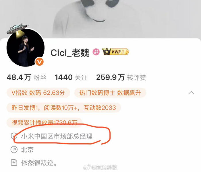 魏思琪接任小米中国区市场部总经理,微博认证已变更