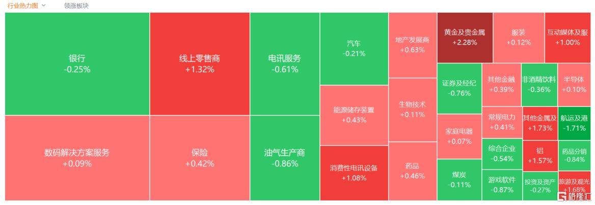 具体来看: 盘面上,午后权重科技股多数拉升转涨助力大市反弹;受市场利好传闻影响,内房股午后直线拉升上扬,万科企业一马当先,大幅收涨超13%;美联储决议 前贵金属强势,白银大涨创历史新高,黄金等有色金属股全天活跃;重型机械股、餐饮股、家电股、煤炭股多数上涨。另一方面,消费电子概念股走低,权 重思摩尔国际跌超7%刷新阶段新低,海运股大幅下跌,光伏股、石油股、航空股大部分表现低迷。此外,今日两只新股上市,宝济药业-B首日上市涨 138.82%,图达通首日上市涨33%。 | 行业热门窗 × | 英流收开 | | | | | | | | | --- | --- | --- | --- | --- | --- | --- | --- | --- | | | | | | 汽车 | 地产发展商 +0.63% | 黄金及贵金属 +2.28% | 服装 +0.12% | 画示 | | | 银行 -0.25% | 线上零售商 +1.32% | 电讯服务 -0.61% | -0.21% | | | | | | | | | | | | 证券及经纪 | 其他金融 | 非酒精饮料 -0.36% | | | | | | 能源储存装置 | 生 ...