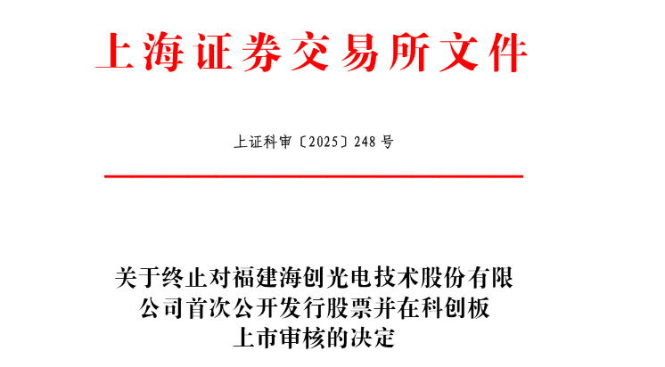 海创光电终止科创板IPO 原拟募7.6亿元兴业证券保荐