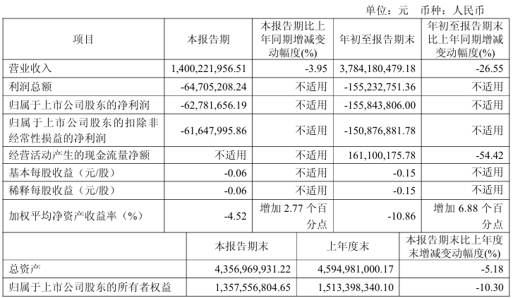 财务表现 - 第三季度营收为1.22亿元,同比下降61.54% [1] - 第三季度净利润亏损4852.78万元 [1] - 前三季度累计营收为4.79亿元,同比下降57.55% [1] - 前三季度累计净利润为5035.57万元 [1]