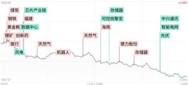 市场整体表现 - A股主要指数大幅下挫,沪指跌1.95%报3839.76点,深证成指跌3.04%报12688.94点,创业板指跌3.36%报2935.37点,科创50和北证50指数跌近4% [1] - 港股同步跳水,香港恒生指数收跌2.48%,恒生科技指数跌4.05% [1] - 沪深北三市合计成交19547亿元,成交额与前一交易日大致相当,场内近4800只个股下跌 [1] - 半导体板块跌幅居前,灿芯股份和宏微科技跌超10%,充电桩概念回落,阳光电源跌超10%,中恒电气等跌停,券商、酿酒、医药等板块均走低 [1] 资源板块逆市走强 - 燃气、石油、煤炭板块逆市活跃,大有能源近6日斩获5个涨停板,国新能源4日收获3涨停,安泰集团连续2日涨停 [1][3] - 首华燃气涨超9%,长春燃气和成都燃气等涨超5% [3] - 驱动因素包括较强冷空气导致全国大范围降温,迎峰度冬启动增加下游电煤补库需求,以及相关部门启动查超产对主产区煤炭产量产生影响 [3] - 机构观点认为板块走高源于三季度行业盈利边际修复增强市场信心,四季度煤炭供给边际趋紧预期强化,以及地缘风险升温下红利防守属性受关注 [3] 免税概念表现活跃 - 免税概念逆市拉升,平潭发展和厦门港务涨停,海南机场涨超6%,南宁百货和步步高涨超2% [1][5] - 政策面利好是主要驱动,财政部等三部门联合调整海南离岛旅客免税购物政策,定于11月1日起实施 [5] - 政策调整包括扩大离岛免税商品范围由45大类增至47大类,允许部分国内商品进入离岛免税店销售并退免税费,将免税购物年龄由16周岁调整为18周岁等 [5] 个股显著异动 - 新股道生天合登陆沪市主板,大涨近400%收报29.68元/股 [1] - 银行板块相对坚挺,农业银行股价续创新高,连续11日收阳 [1] - 市值超2000亿元的中兴通讯A股尾盘跌停报48.63元/股,其港股跌近14% [1][7] - 中兴通讯异动与消息面相关,有报道称美国联邦通信委员会宣布主流电商平台已下架数百万件中国电子产品,涉及中兴通讯等公司产品,且FCC计划就是否扩大禁令进行投票 [7]