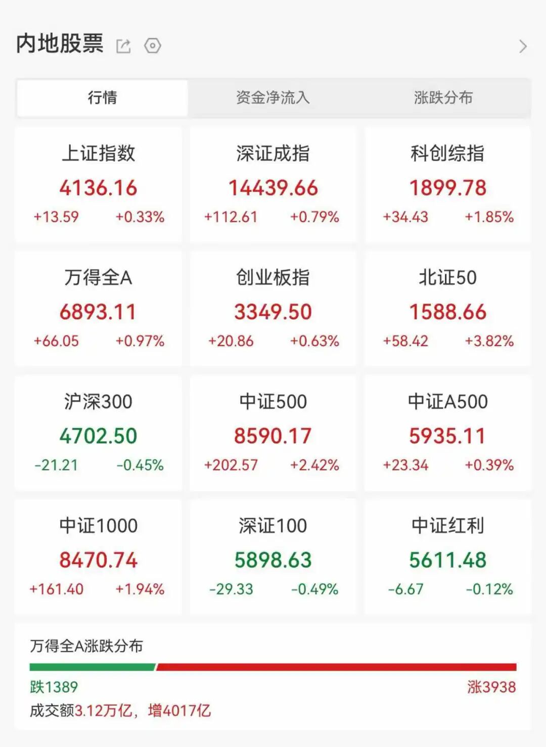 市场整体表现 - 1月23日A股三大指数集体上涨,沪指收报4136.16点,上涨0.33%,深证成指上涨0.79%,创业板指上涨0.63% [1] - 市场全天成交额达31181.08亿元,较前一日放量4017.03亿元 [1] - 主要指数中,科创综指上涨1.85%,北证50指数上涨3.82%,中证500指数上涨2.42%,中证1000指数上涨1.94% [2] - 沪深300指数逆市下跌0.45%,中证红利指数下跌0.12% [2] - 万得全A指数上涨0.97%,全市场上涨个股达3938只,下跌个股1389只 [2] 行业与板块表现 - 光伏板块爆发,晶科能源、隆基绿能、钧达股份等超过20只股票涨停 [2] - 商业航天板块延续强势,航天电子、中国卫星、上海港湾、巨力索具等超过20只股票涨停 [2] - 黄金概念走强,中国黄金、白银有色等股票涨停 [2] - 部分CPO概念股逆市下挫,新易盛、中际旭创、天孚通信均下跌超过5% [3] - 保险、银行、煤炭板块下跌 [3] 光伏板块深度分析 - 1月23日光伏板块爆发,钧达股份收获2连板,晶科能源、迈为股份、捷佳伟创、奥特维等多股“20cm”涨停 [5] - 2026年以来,奥特维股价累计涨幅高达98.87%,近乎翻倍,钧达股份大涨82.09%,迈为股份大涨57.06% [6] - 消息面上,特斯拉CEO埃隆·马斯克在世界经济论坛年会期间力挺太空光伏,并披露关键产能规划,SpaceX与特斯拉目标在未来三年内实现每年100GW的太阳能制造能力 [7] - 广发证券研报指出,随着SpaceX等公司火箭发射成本下降,全球商业航天活动频繁,太空光伏有望受益,产业化前期设备厂商率先受益 [8] - 财信证券表示,在商业航天产业趋势带动下,SpaceX的Starlink、我国千帆星座等规划卫星达万颗级别,带动太空光伏电池需求大幅增长 [10] - 华西证券研报认为,太空光伏已成为商业航天和高端应用的战略性前沿解决方案,正在迎来其拐点时刻 [10] 主力资金流向 - 本周(1月19日至23日)共计84只股票主力资金净流入额在3亿元以上 [9] - 主力资金净流入额前五名分别为:中国平安(13.34亿元)、美的集团(12.50亿元)、海光信息(11.86亿元)、寒武纪-U(11.15亿元)、赣锋锂业(10.40亿元) [9][11] - 从概念板块看,隆基绿能、迈为股份等多只太空光伏概念股本周获得主力资金明显加仓 [10] - 隆基绿能本周主力资金净流入8.62亿元,周涨幅3.31%,迈为股份主力资金净流入8.31亿元,周涨幅高达36.29% [11] - 本周34只股票主力资金净流出额在10亿元以上 [11] - 主力资金净流出额前三名分别为:三花智控(61.40亿元)、中际旭创(49.88亿元)、香农芯创(41.69亿元) [11][12] - 立讯精密、胜宏科技、利欧股份主力资金净流出额均超过30亿元 [11] - 近期光模块头部企业中际旭创、新易盛、天孚通信遭主力资金撤离,一周净流出金额依次为49.88亿元、14.23亿元、7.66亿元 [12] - 宁德时代、阳光电源、特变电工等电力设备细分赛道龙头也遭主力资金抛售,一周净流出额均在15亿元以上 [12] 机构观点与市场展望 - 天风证券指出,1月以来延续2025年12月末上涨行情,上证指数接近4200点,再创阶段新高 [4] - 从资金层面看,两市成交额持续攀升,但偏股型公募新发份额回落,存量股票型ETF申购资金大幅净流出,而两融资金则大幅净流入,形成分化 [4] - 机构建议静待ETF资金的新一轮动向,以及春季第二阶段的行情,并重点关注3月全国两会的宏观政策预期和2025年年报的微观基本面预期 [4] - 美的集团与长安汽车举办全面战略合作协议签约仪式,合作将深化至车家互联、零部件与全渠道营销领域 [9] - 里昂上调美的集团H股目标价至95港元,报告指出公司海外销售有望受益于OEM订单增长 [9] - 三花智控预计2025年实现归母净利润38.74亿元至46.49亿元,同比增长25%至50%,公司持续巩固制冷空调电器零部件业务的行业龙头地位,并借助标杆客户效应拓展汽车零部件业务优质订单 [12]