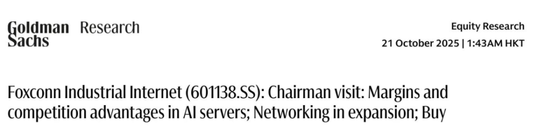 与董事长交流后,高盛维持工业富联买入评级,目标价人民币83.8元