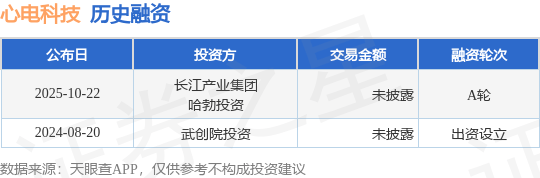 证券之星消息,根据天眼查APP于10月22日公布的信息整理,武汉心电科技有限公司A轮融资,融资额 未披露,参与投资的机构包括长江产业集团,哈勃投资。 | 公布日 | 投资方 | 交易金额 | 融资轮次 | | --- | --- | --- | --- | | 2025-10-22 | 长江中业集团 哈勃投资 | 未披露 | A轮 | | 2024-08-20 | 武创院投资 | 未披露 | 出资设立 | 武汉心电科技有限公司,由武汉理工大学官建国教授团队携手武汉产业创新发展研究院(简称"武创 院",系武汉市人民政府倾力打造的新型研发机构)联合创立。公司专注于电磁功能材料的全方位发 展,涵盖研发、生产及销售的各个环节。依托武汉理工大学及材料复合新技术国家重点实验室的深厚底 蕴,公司明确自身定位为电磁功能材料技术的领航者,致力于不断为军事及民用领域的需求方输送高性 能、个性化及定制化的产品。通过持续的技术革新,公司已成功研制出具有颠覆性意义的差异化产品。 数据来源:天眼查APP 以上内容为证券之星据公开信息整理,由AI算法生成(网信算备310104345710301240019号),不构成 投资建议。 ...
