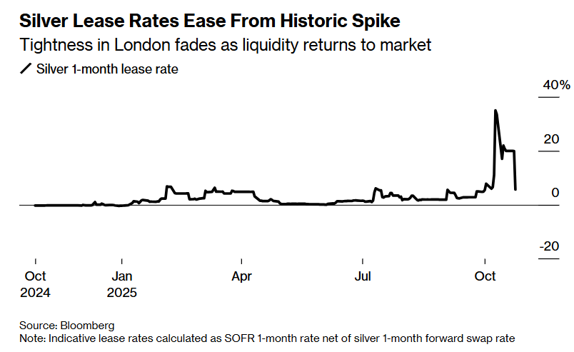 白银租借利率从峰值断崖式回落的背后:“白银挤压”退潮,流动性回归