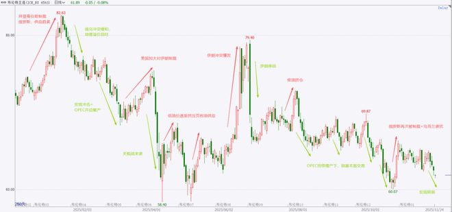 来源:市场资讯 (来源:油市小蓝莓) 市场回顾 行情回顾 库存:平衡表的弱平衡Q4才体现到显性库存 弱平衡对库存的传导逐渐兑现,除了旺季以外,整体显性库存的大规模累积于9月后才更为明显。 拆分当下的水上原油库存,9月初至今累库2亿桶,水上库存累库月1.7亿桶。其中浮仓累库5千万 桶(伊朗3千万桶、俄罗斯1千万桶),在途库存累库1.2亿桶(OPEC大概1亿桶)。 数据来源:紫金天风期货研究所 供应:如期增产的OPEC 自上半年以来OPEC开启增产进程,根据IEA统计,和1月相比,9月全球原油产量增长约700万桶 日,拆分来看,其中OPEC+ 9月产量相较于1月产量增长约400万桶日,Americas Quintet国家增长 约200万桶日,Biofuel增长约100万桶日。 我们去年年报给出了230万桶日的年度增量(包含美国制裁伊朗的100万桶日),就兑现结果来看 供应端整体评估较为合理,平均下来年度增长量级约为250-300万桶日左右。 数据来源:紫金天风期货研究所 回顾2025年的原油市场,波动区间80-55(以Brent为例),价格重心整体继续下移,两次主要的 冲高分别位于年初(美国制裁俄罗斯)和年中(伊 ...