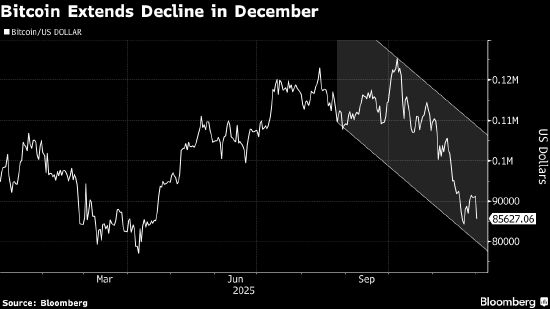 来源:环球市场播报 美国经济数据显示11月工厂活动以四个月来最快的速度萎缩,制造商仍难以摆脱长期来的低迷。美国供 应管理协会(ISM)周一公布的数据表明,制造业指数下降0.5点至48.2。该指数已连续九个月低于50这 一荣枯分水岭。 比特币跌破86,000美元并拖累主要代币走低,相关股票随之下挫。Coinbase Global Inc.和MARA Holdings Inc.均下跌至少2%。 "比特币的再次下跌可能会给股市造成一些真正的问题," Miller Tabak + Co.首席市场策略师Matt Maley写道。 美国上市的银矿公司上涨,因白银在供应紧张推动下延续了周五的涨势。金矿股也普遍走高。油价受哈 萨克斯坦一条重要输油管道中断的推动上涨,石油股小幅走高。 美国股市周一收低,因加密货币重拾跌势且债券收益率在日本央行发出可能很快会收紧政策的信号后跳 涨。 标普500指数下跌0.5%,以科技股为主的纳斯达克100指数下跌0.4%。芝加哥期权交易所波动率指数徘 徊在17左右。新思科技是标普500指数中涨幅最大的个股之一,因英伟达投资20亿美元购入这家芯片设 计软件公司的股票。 ...