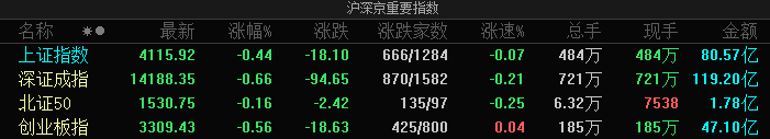 A股指数集体低开:沪指跌0.44%,贵金属、油气等板块跌幅居前