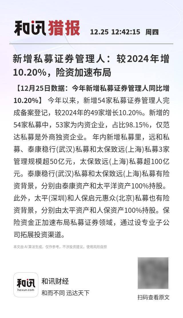 新增私募证券管理人:较2024年增10.20%,险资加速布局