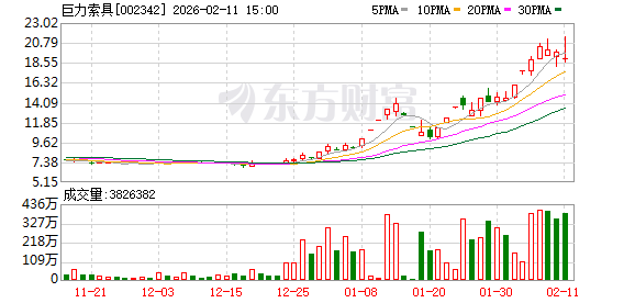 龙虎榜丨巨力索具今日跌1.96%,2家机构专用席位净买入1.54亿元