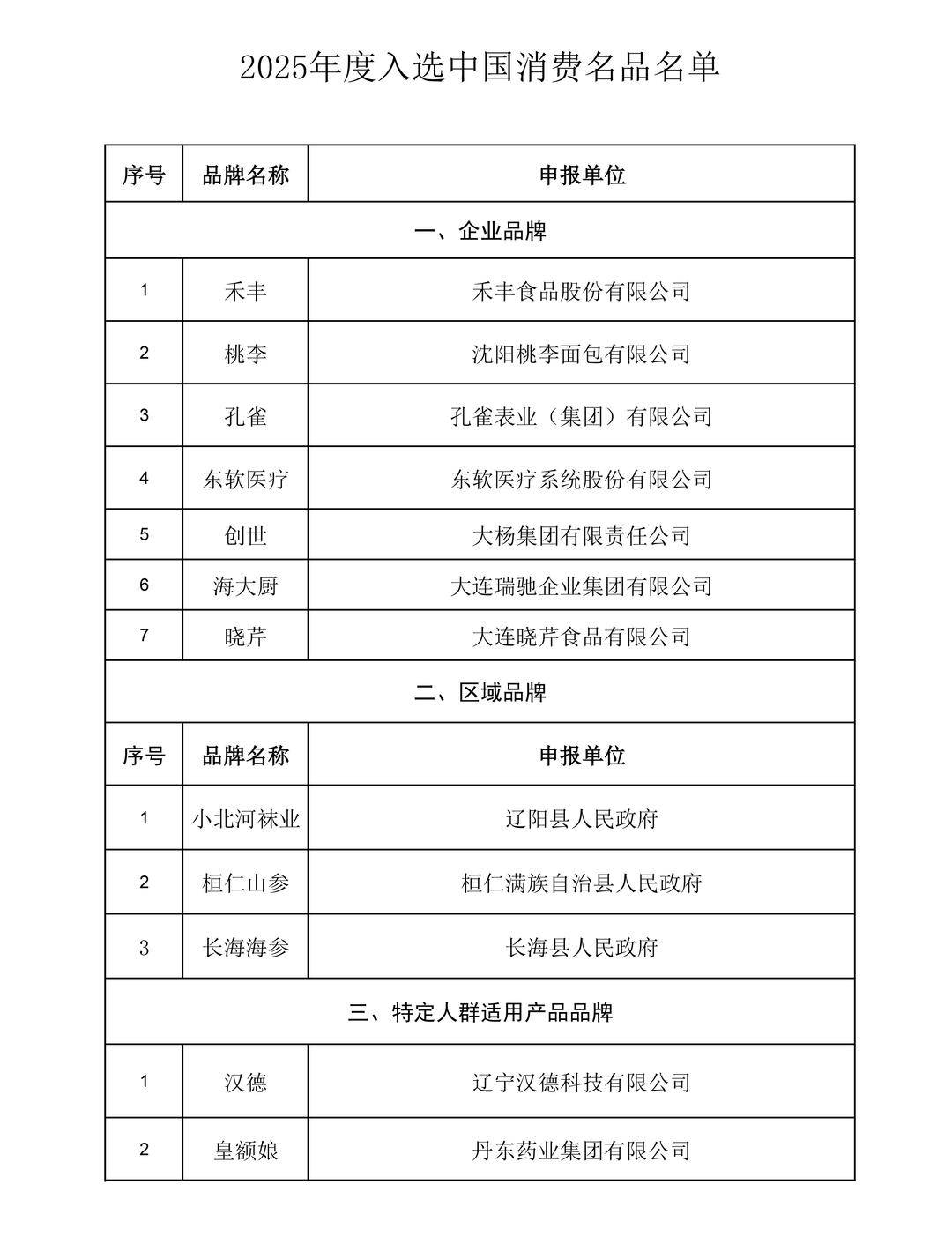 2025年度中国消费名品名单公布 辽宁12个品牌成功上榜