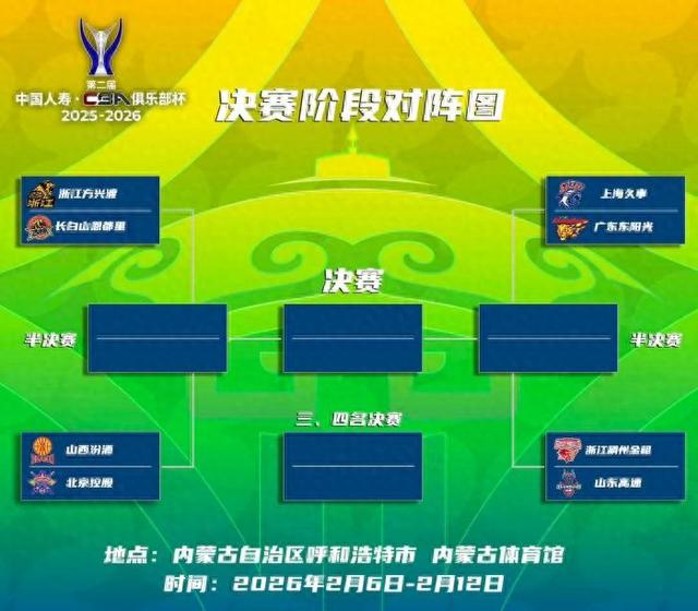 第二届CBA俱乐部杯决赛阶段角逐将于2月6日在呼市启幕