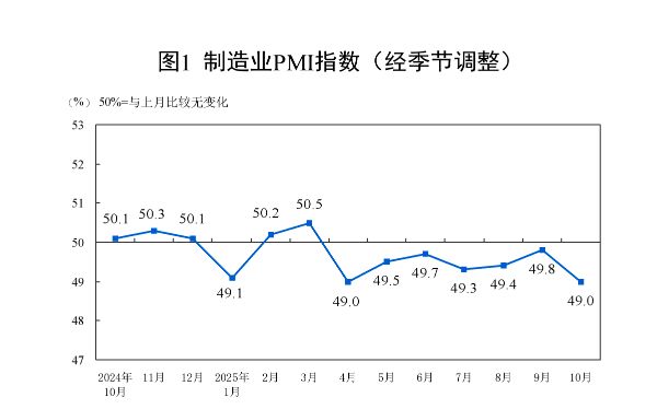 10月制造业采购经理指数为49%,制造业短期波动仍有趋稳基础